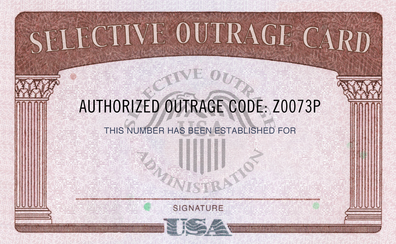It’s okay to be afflicted by selective outrage, we all do it. Have the intellectual honesty to admit it.